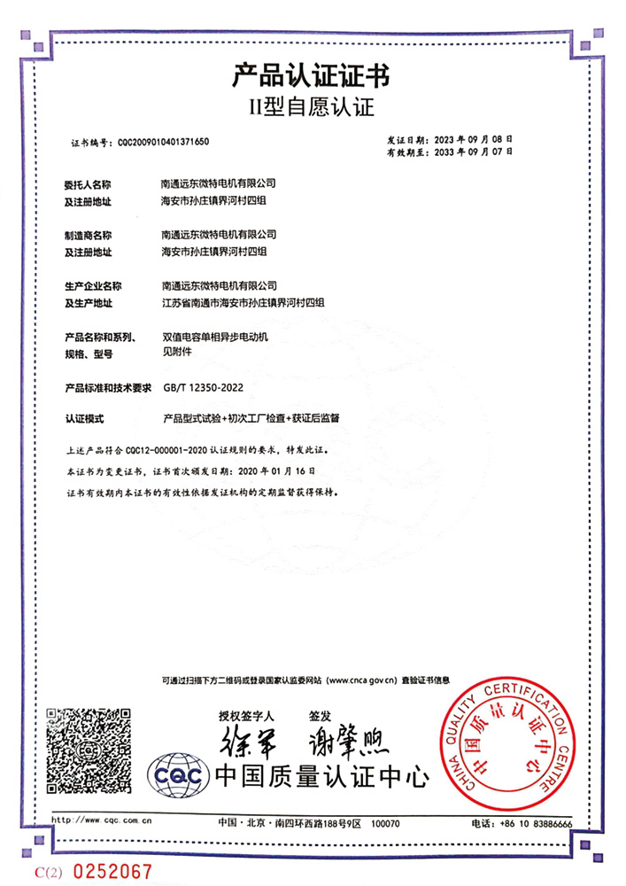 单相电容运转异步电动机II型自愿认证